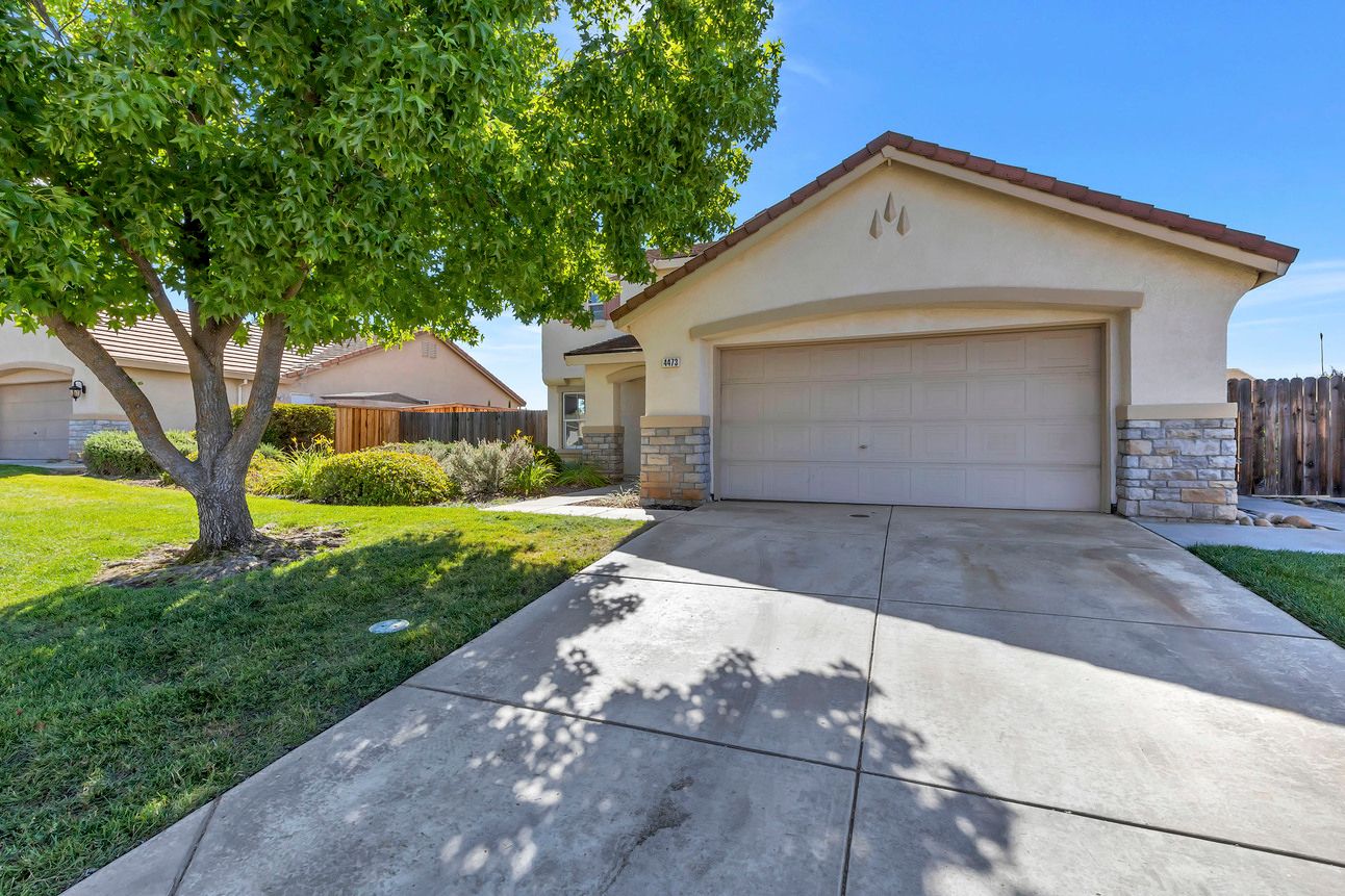 Beautiful 3 bedroom, 2 bathrooms in Galt. Walk into the living room with laminate floors, ceiling fan, and fireplace. The kitchen features granite countertops, a tile backsplash, and an eat-in area. The primary suite has carpet, a walk-in closet, upgraded vanity, and a glass sliding door to the backyard. The home also features a mud room with laundry hookups and a closet. The backyard features a patio and a large grass area.