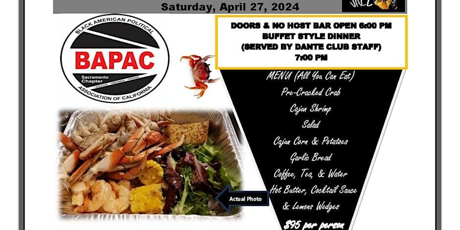 BAPAC Sacramento Chapter is excited to present our 5th Annual Crab & Shrimp Feed Fundraiser! Come join us for great food, music, & fun!