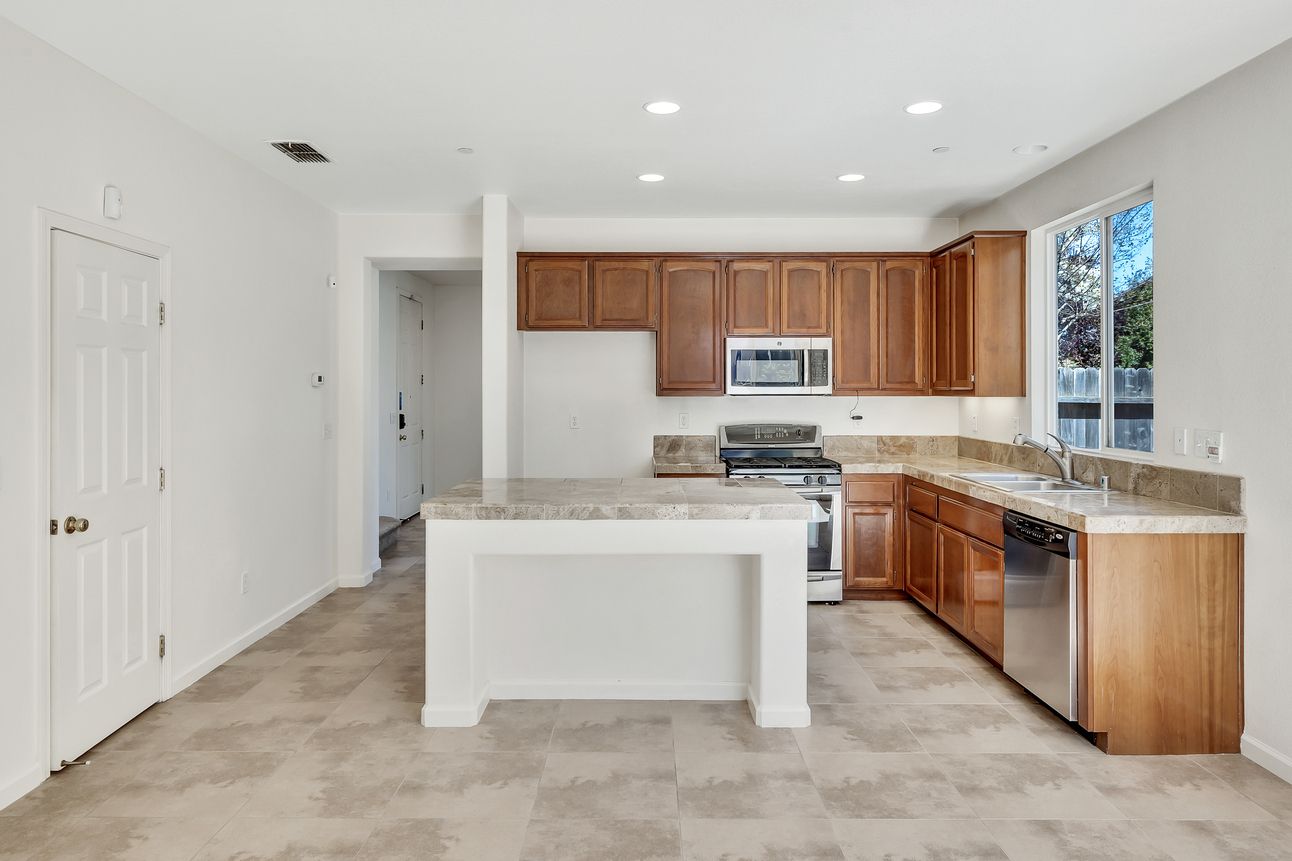 Beautifully updated 4 bedroom, 3 bathroom in the Courtyards in Lincoln. Walk into a large living room with carpet and large windows for great natural light. The large kitchen has stainless steel appliances, walk-in pantry, and large center island. The large family room has laminate flooring and fireplace. Downstairs also features a bedroom and a full bathroom. Upstairs features 3 additional bedrooms, including the primary suite. The primary suite features carpet, walk in closet, and separate tub and shower. The backyard features a large wrap-around patio. Great central location is minutes to Highway 65 and Old Town.