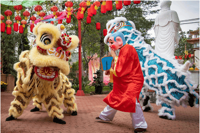 Lion & Dragon Dances: These energetic performances are believed to ward off evil spirits and usher in good luck. The vibrant costumes, rhythmic movements, and loud drums create an exciting spectacle and symbolize strength and prosperity.