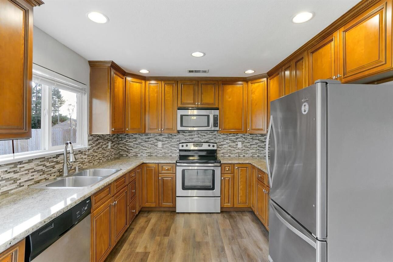 Beautifully updated 3 bedroom, 2 bathroom home in Placerville. Walk into a large living room with laminate flooring and bright natural light. The kitchen has an updated backsplash, updated cabinets, and stainless steel appliances. All 3 bedrooms feature large rooms and carpet. The primary suite features a ceiling fan, large closet, and upgraded tiled shower. The large backyard features plenty of space for summer fun. Just 5 minutes to Old Town Placerville this is a great place to call home.