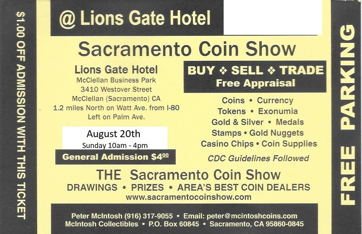 With more than 50 tables of coins and currency, the Sacramento Coin show is a "must attend" event. Collectors and dealers from across the West frequent this show. Don't miss any of these shows!
