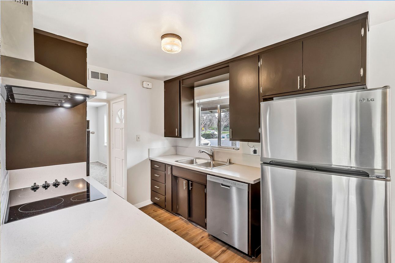 Beautiful 3 bedroom, 2 bathroom in a great location. Walk into a large living room with carpet and a fireplace. The upgraded kitchen with high end stainless steel appliances, upgraded cabinets and countertops. The kitchen opens to an eat in area and a living room with a glass sliding door to the backyard. All 3 bedrooms have carpet, including the primary suite. The primary suite features a large closet, carpet, and a full bathroom. A large backyard with a huge yard, make this a great place to call home.